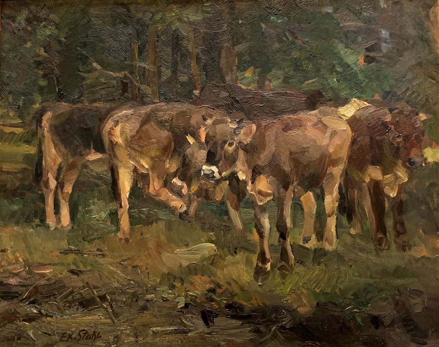 Titel: "Allgäuer Jungrinder im Wald"