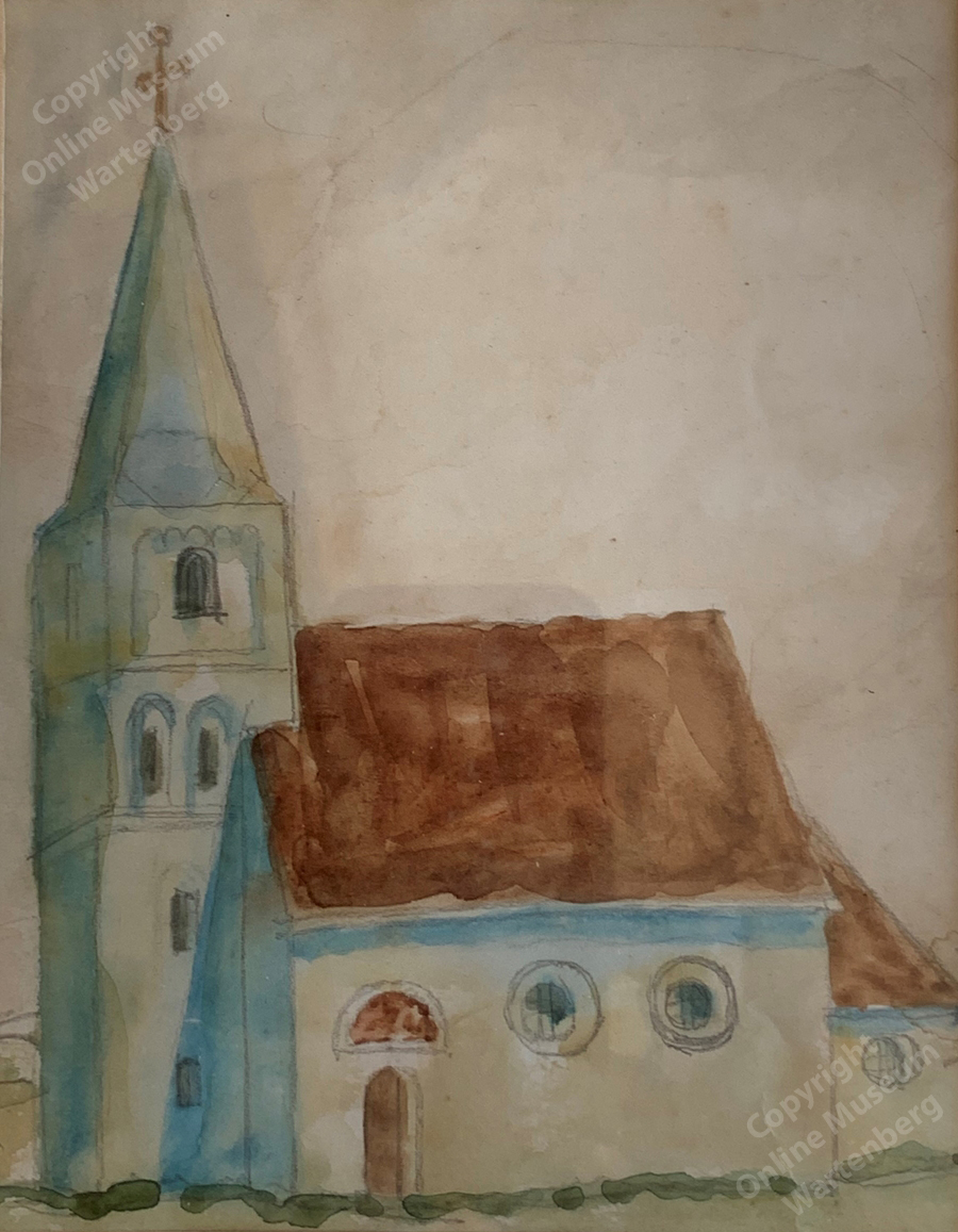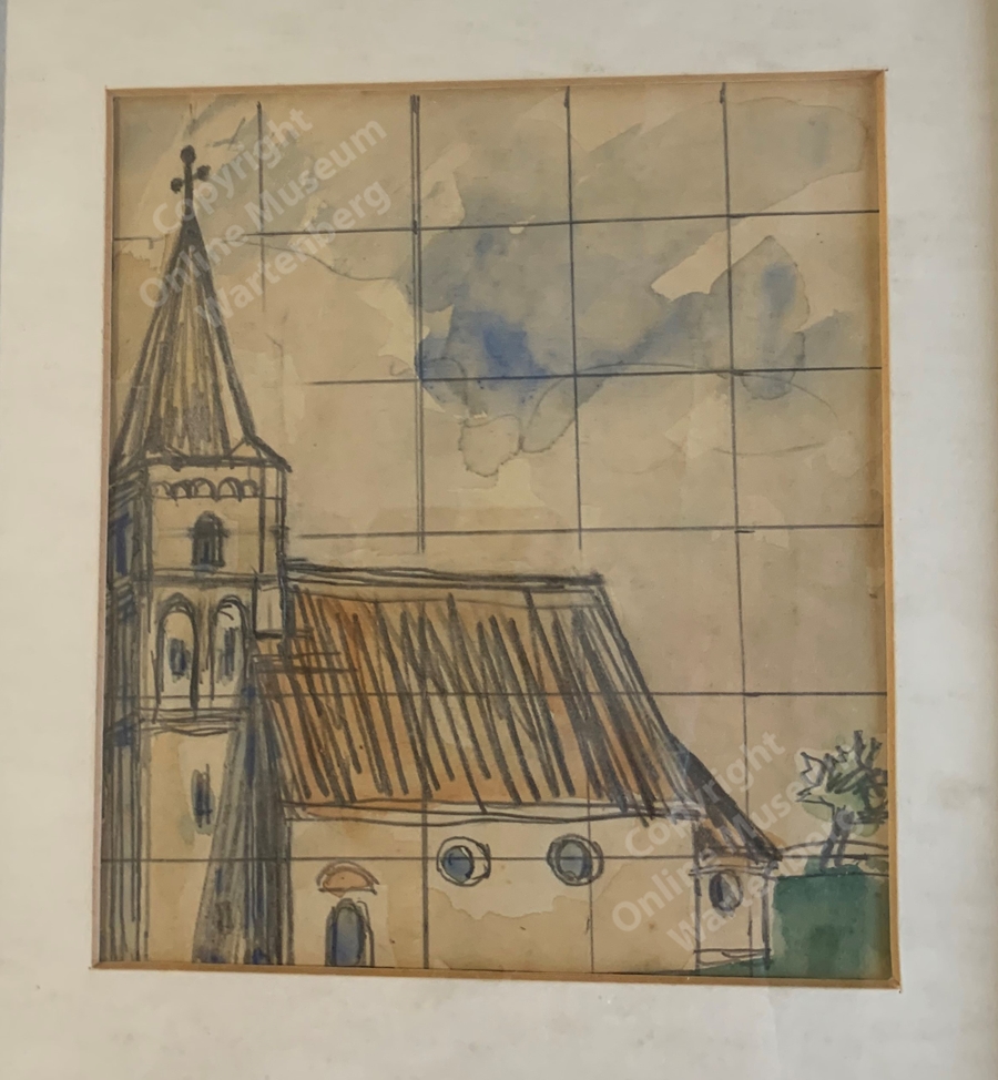 rechts: "Arbeitsskizze" zum Bild mit Größen- u. Relationen-Raster