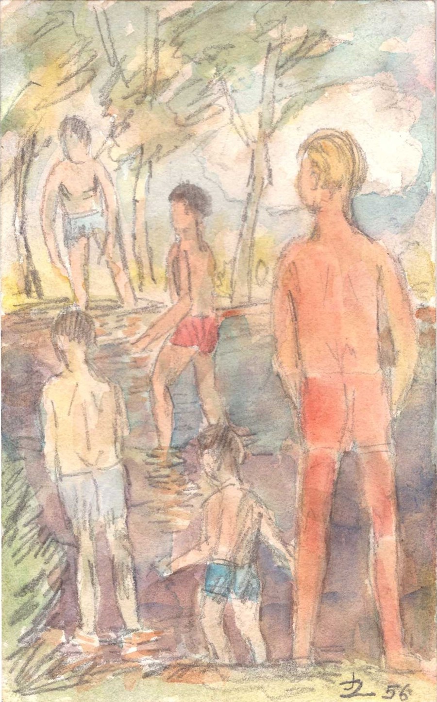 Titel: "Burschen am Wasser"